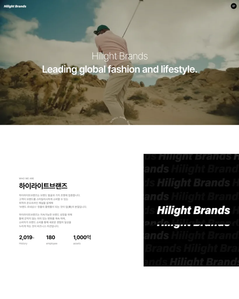 가장 최근에 만들어진 템플릿입니다. 트랜디 하면서도 깔끔한 디자인을 원하시는 분들에게 추천드리는 템플릿입니다. 과하지 않으면서도 세련된 효과들이 인상적인 홈페이지입니다.